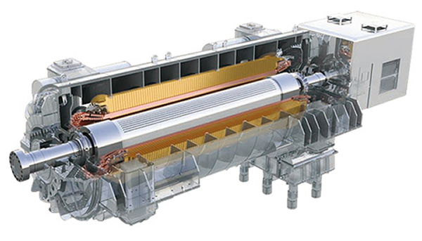 汽轮发电机是将通过汽轮机产生的机械能(转动动能)转化为电能的设备。为满足社会需求,德赢vwin8868官网不断地进行技术开发,为客户提供从小到大的各种容量等级的产品。同时,与以往相比,扩大了高效可靠的间接氢冷方式的应用范围。此外,为满足系统运行操作需求,我们正在努力提高系统的可操作性。