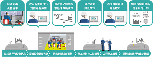 自动通知客户何时、更新何种设备以获得更好的经济效益,协助客户及时做出决策。根据机器设备的实际运行情况,通过机组模型模拟设备投资后的运行情况,能够对设备性能和环境性能进行评估,为企业综合投资决策提供有价值的信息。并且,结合工程设计的分析数据,持续高效地进行设备运行维护。