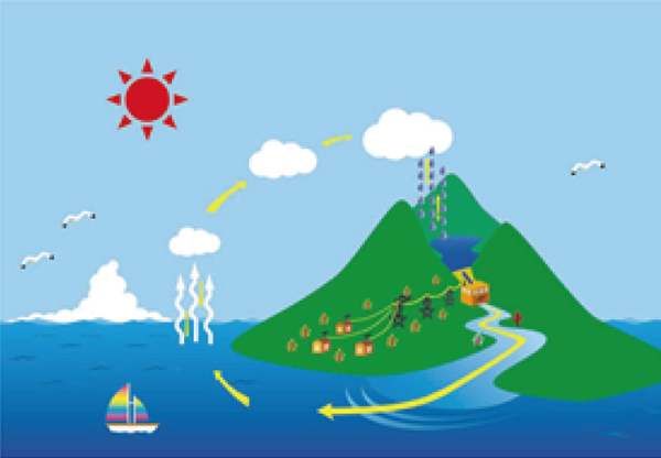 利用水的势能进行发电的“水力发电”是环保且可再生的自然能源,同时,它通过地球的自然循环提供清洁的能源。