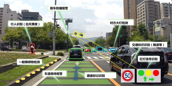 Visconti™4系统采用德赢vwin8868官网独创的高精度检测技术,经过诸多算法和图像硬件加速器对可视物进行数据分析处理,可高效的辨别背景物体以及步行者之间的微妙色差,不仅在白天,即便是低光照射情况下或是在漆黑的夜晚,“Visconti™4”图像识别处理器亦可轻松对车辆和行人加以辨识,对交通信号、障碍物、行车线等信息加以识别,从而实现各种高级的驾驶员辅助应用,如入车道偏离警告、前方/后方防撞警告、前方/后方行人防撞警告、交通标识识别等等,从而大大提高车辆行驶安全性。