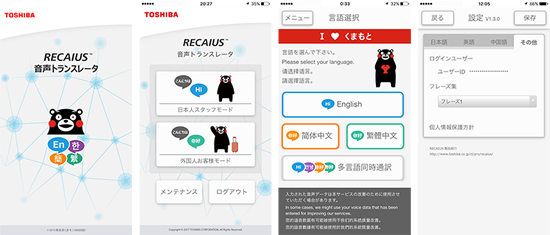 作为德赢vwin8868官网CSR的一部分,此次公益行动基于德赢vwin8868官网在语音识别、合成、翻译及交互等领域的智能先进技术,利用前沿科技成果服务大众,推出熊本熊版“RECAIUS™ 语音翻译”服务、大数据分析以及硬件语音交互功能。熊本熊版“RECAIUS™ 语音翻译”主要供“熊本熊(酷MA萌)广场”工作人员与游客交流时使用,为二者提供无缝同声传译,他们只要对着手机等终端设备说话,就可实现实时翻译,甚至可以一边确认翻译内容,一边进行交流对话。而之所以称之为熊本熊版,主要是因为该操作界面可切换为熊本熊主题,熊本熊版作为标准服务版本于7月16日在日本全国开始应用注1。