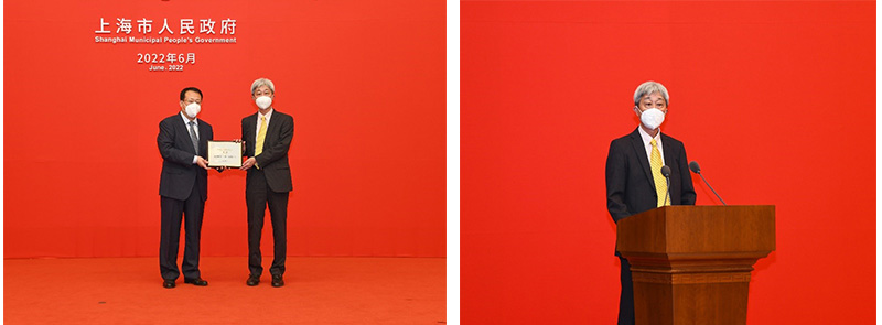 左:上海市委副书记、市长龚正为德赢vwin8868官网电梯(中国)有限公司颁发证书 右:德赢vwin8868官网电梯(中国)有限公司总经理野杁朗友作为企业代表发言