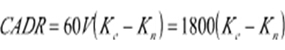 CADR:空气净化器运转后,测量固体颗粒物浓度,得到的清除率减去自然衰减率的数值,与实验室的大小(体积)相乘得到的数值 计算公式 ![]() 其中: CADR:洁净空气量 ,单位为立方米每小时(m³/h) V:测试房间的体积,以立方米表示(m³) Ke:总衰减率(min-1) Kn:自然衰减率(min-1) |