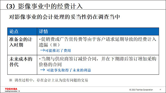 (注2)详情请参照6月12日的“关于自主检查的结果、特别调查委员会的调查概要及与委托第三方委员会的事项的关系的通知(http://www.toshiba.co.jp/about/ir/jp/news/20150612_1.pdf)”。