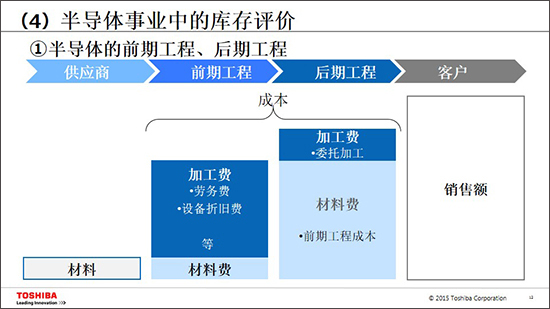 此次出现问题的会计处理,我们认为可能存在在分为如此2部分的半导体生产过程中,因为没有进行适当的标准成本修改处理,导致对期末库存资产过大评价,从而过多计入收益的担忧。
